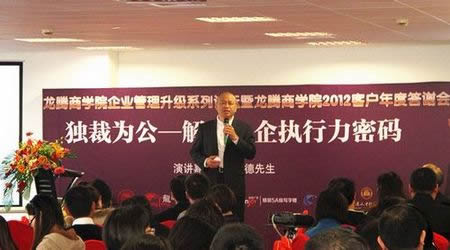 近日,由正航軟件及合作伙伴龍騰企業(yè)咨詢(xún)有限公司聯(lián)合舉辦的企業(yè)管理升級系列論壇之“獨裁為公 解密臺企執行力密碼”在常州順利舉行。論壇邀請到臺灣管理專(zhuān)家,正航軟件大中華區總裁劉立德先生結合30年企業(yè)管理經(jīng)驗,為與會(huì )管理者們奉上了一場(chǎng)提升企業(yè)執行力的管理大餐。